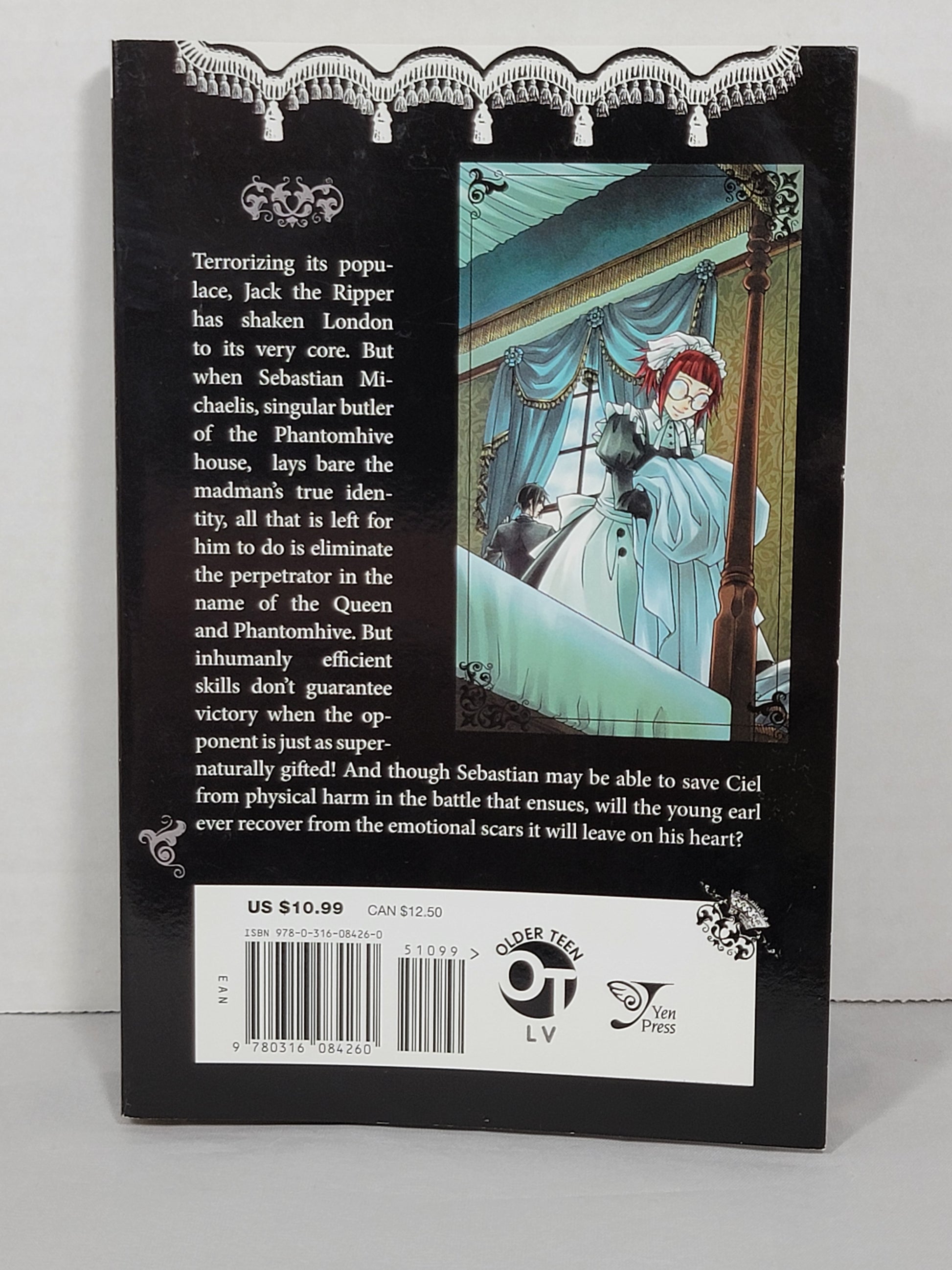 Terrorizing its populace, Jack the Ripper has shaken London to its very core. But when Sebastian Michaelis, singular butler of the Phantomhive house, lays bare the madman's true identity, all that is left for him to do is eliminate the perpetrator in the name of the Queen and Phantomhive. But inhumanly efficient skills don't guarantee victory when the opponent is just as supernaturally gifted! And though Sebastian may be able to save Ciel from physical harm in the battle that ensues, will the young earl ever recover from the emotional scars it will leave on his heart?