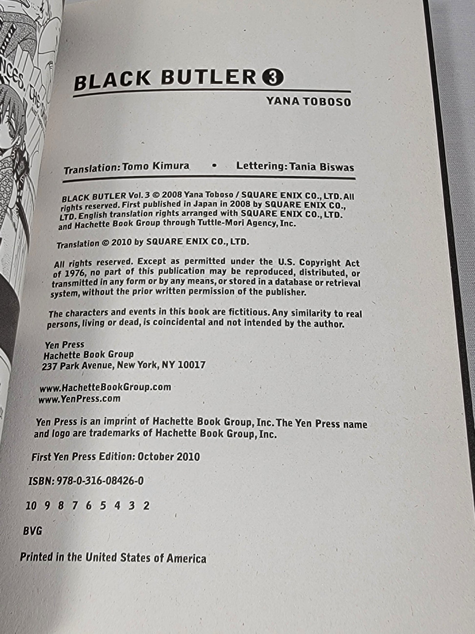 This listing is for pre-owned copy of Black Butler #3 by Yana Taboso.